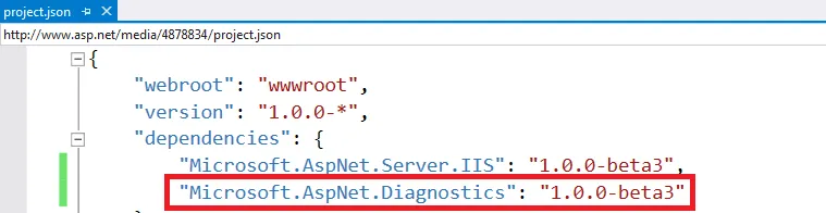 public void Configure(IApplicationBuilder app) { app.UseWelcomePage(); }}For this to compile, you’ll need to add a dependency on Microsoft.AspNet.Diagnostics