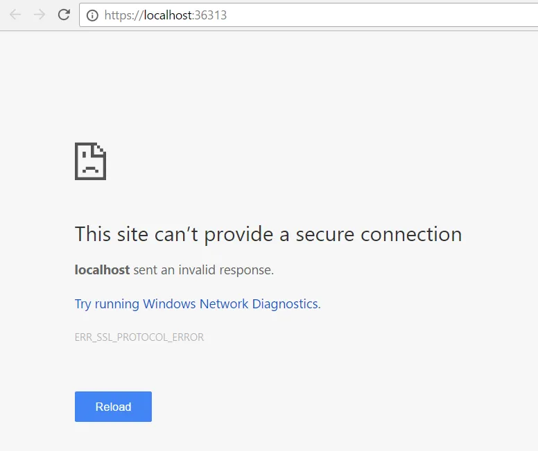 Our web app still doesn’t force users to use the HTTPS URL though. In my example, I can still browse to the web app via http://localhost:36313/.