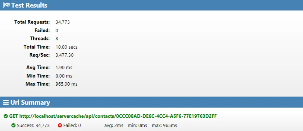 So, let’s now load test this again passing the ETag, with the redis cached item