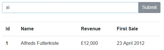 <SearchCriteria placeholder="Enter company name ..." doSearch={this.doSearch} />At the moment, our submit button triggers the form’s submit which in tern calls handleSubmit() which then calls this.props.doSearch in our calling component to invoke the search (our calling component actually does the search).